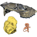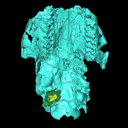 M3#1033CT image stack of a skull of Hypisodus minimus. Also shows numerous postcranial material including an atlas articulated with the occipital bone, the distal part of a left humerus articulated to radius and ulna, a part of a femur, a part of a tibia and fibula, unidentifiable tarsal bones, parts of the metatarsals II, III, IV and V and their phalanges, a proximal phalanx of digit III or IV, a middle phalanx of digit III or IV, a possible patella and calcaneus, as well as numerous unidentifiable broken bony fragments. Type: "3D_CT"doi: 10.18563/m3.sf.1033 state:published |