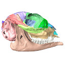 M3#10363D surface models of a skull of Hypisodus minimus (SMNK-PAL27212). The data includes a surface model for: basisphenoid, tympanic bullae, ethmoid (lamina perpendicularis), frontals, jugal (left), jugal (right), lacrimals, lower dentition, mandibles, mastoid processes, maxillaries, maxilloturbinals, nasals, occipital, palatine, parietals, petrosals, presphenoid, squamosals, turbinates, upper dentition, and the vomer. Type: "3D_surfaces"doi: 10.18563/m3.sf.1036 state:published |