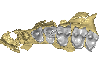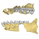 M3#366- CBI-1-565, a damaged right mandible, which consists of three isolated pieces found together and reassembled here: the anterior part of the dentary bears the p3 and m1, and alveoli for p4, p2 and c, while the posterior part preserves m3 and a portion of the ascending ramus; the m2 was found isolated but in the same small calcareous block treated by acid processing. - CBI-1-577, isolated right lower p4. - CBI-1-587, isolated left lower p2 (reversed). - CBI-1-580, isolated left lower canine (reversed). Type: "3D_surfaces"doi: 10.18563/m3.sf.366 state:published |