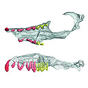 M3#768The specimen consists of a partial cranium prepared out of a calcareous phosphate matrix. The partial cranium lacks the anterior part of the rostrum, the cranial roof, and most of the basicranium apart from the left zygomatic process of the squamosal. The maxilla, nasal, palatine, pterygoid, alisphenoid, and squamosal bones are preserved, as well as two incomplete dental rows described hereafter. Type: "3D_surfaces"doi: 10.18563/m3.sf.768 state:published |