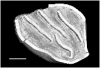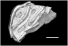 M3#640Fragment of either an upper tooth (mesial laminae) or a lower tooth (distal laminae). The specimen was scanned with a resolution of 6 µm using a μ-CT-scanning station EasyTom 150 / Rx Solutions (Montpellier RIO Imaging, ISE-M, Montpellier, France). AVIZO 7.1 (Visualization Sciences Group) software was used for visualization, segmentation, and 3D rendering. This fragment of tooth was prepared within a “labelfield” module of AVIZO, using the segmentation threshold selection tool. Type: "3D_surfaces"doi: 10.18563/m3.sf.640 state:published |