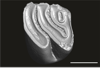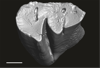M3#638Right lower m3. This isolated tooth was scanned with a resolution of 6 µm using a μ-CT-scanning station EasyTom 150 / Rx Solutions (Montpellier RIO Imaging, ISE-M, Montpellier, France). AVIZO 7.1 (Visualization Sciences Group) software was used for visualization, segmentation, and 3D rendering. The specimen was prepared within a “labelfield” module of AVIZO, using the segmentation threshold selection tool. Type: "3D_surfaces"doi: 10.18563/m3.sf.638 state:published |