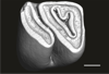 M3#713Right lower molar (m1 or m2). The specimen was scanned with a resolution of 4.5 µm using a μ-CT-scanning station EasyTom 150 / Rx Solutions (Montpellier RIO Imaging, ISE-M, Montpellier, France). AVIZO 7.1 (Visualization Sciences Group) software was used for visualization, segmentation, and 3D rendering. This isolated tooth was prepared within a “labelfield” module of AVIZO, using the segmentation threshold selection tool. Type: "3D_surfaces"doi: 10.18563/m3.sf.713 state:published |